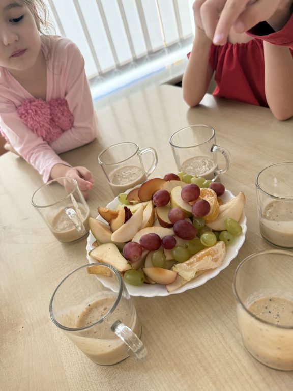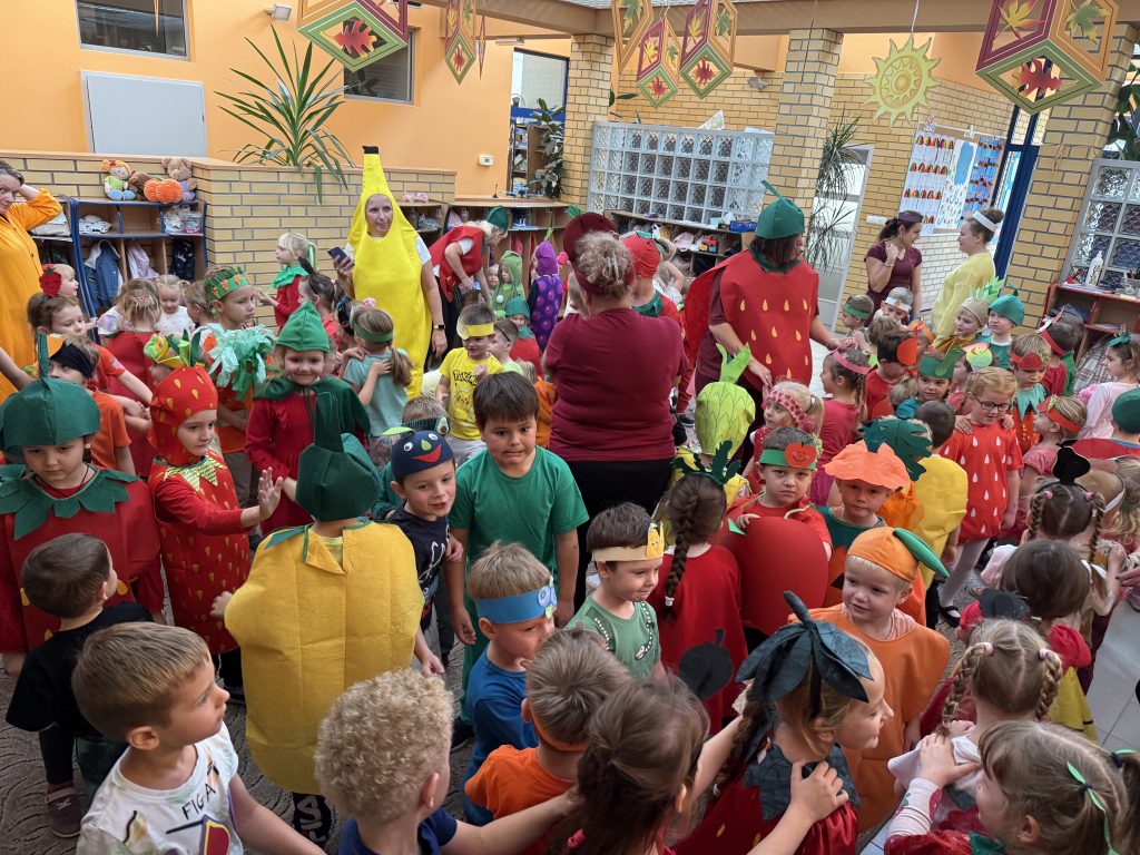 Wszyscy przebrali się w tym dniu za owoce lub warzywa – było pięknie i kolorowo. Oprócz tańców i zabaw przygotowywaliśmy koktajle owocowe, soki , sałatki a także próbowaliśmy różnych , czasem bardzo egzotycznych owoców